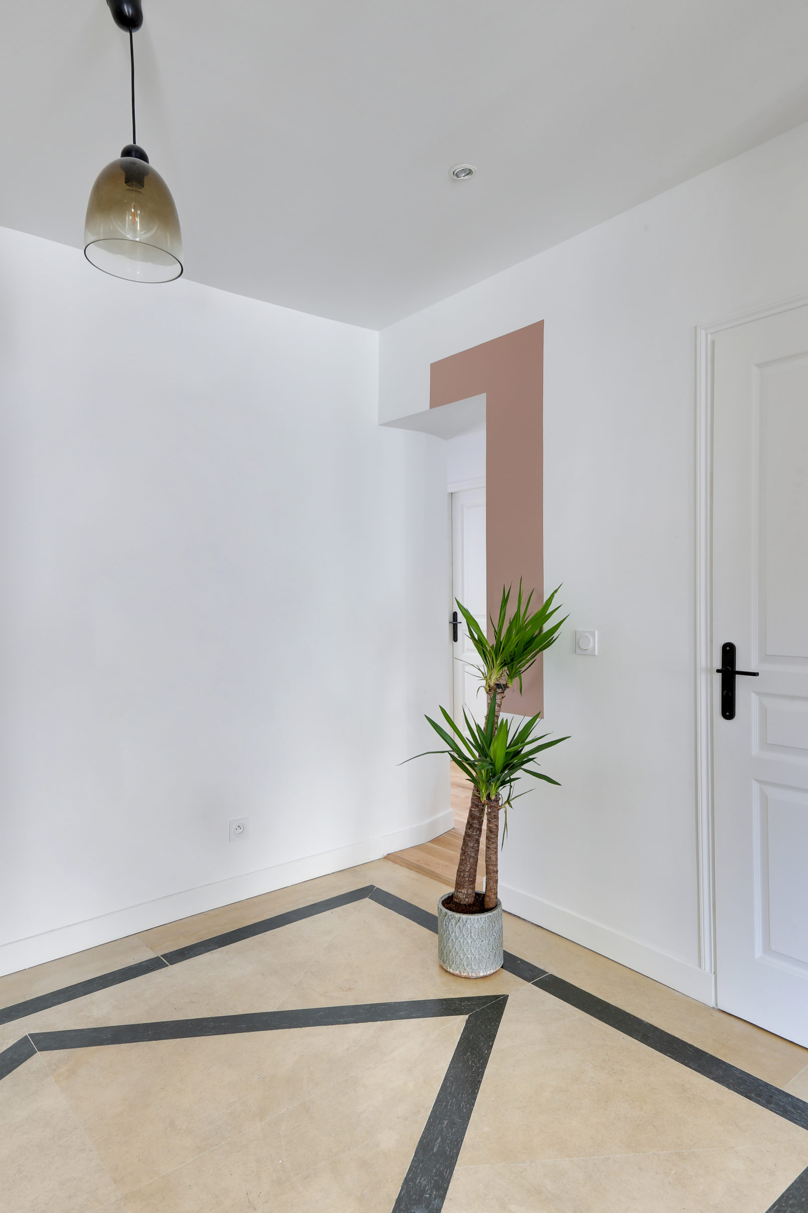 Conseils en décoration pour un appartement refait à neuf avant achat par nos clients. L’objectif était d’aménager un espace de rangement dans la chambre principale et d’apporter de la couleur dans les pièces à vivre sans écraser l’espace.