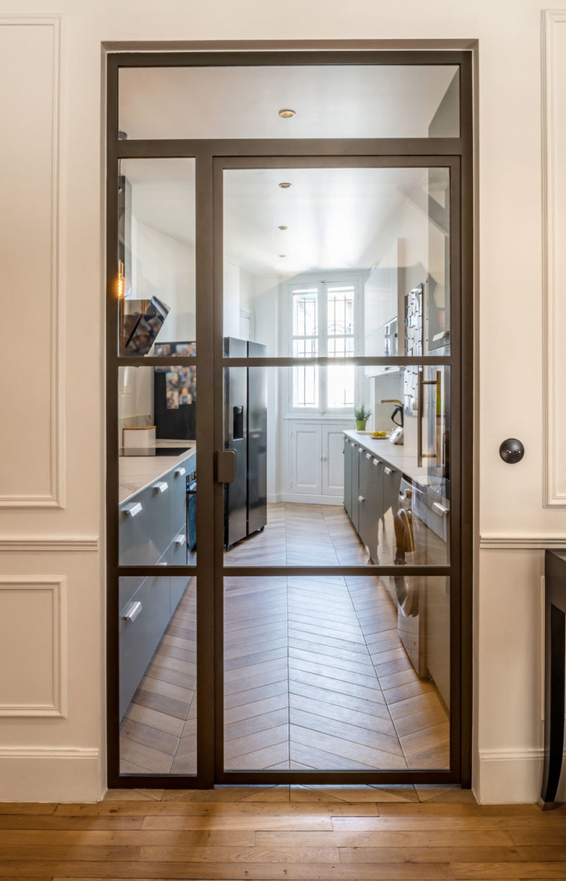 Rénovation totale d’un appartement de 130m2. Nous avons ouvert l’espace, pour travailler la lumière et les points de vue, et pour créer une circulation fluide dans une grande pièce à vivre aux accents industriels.